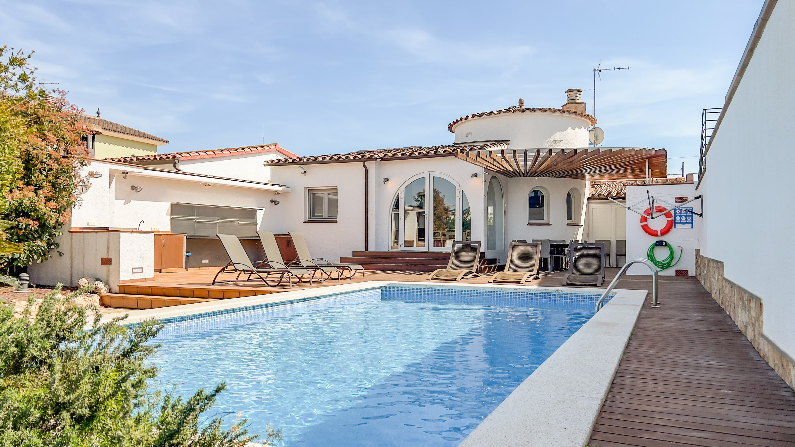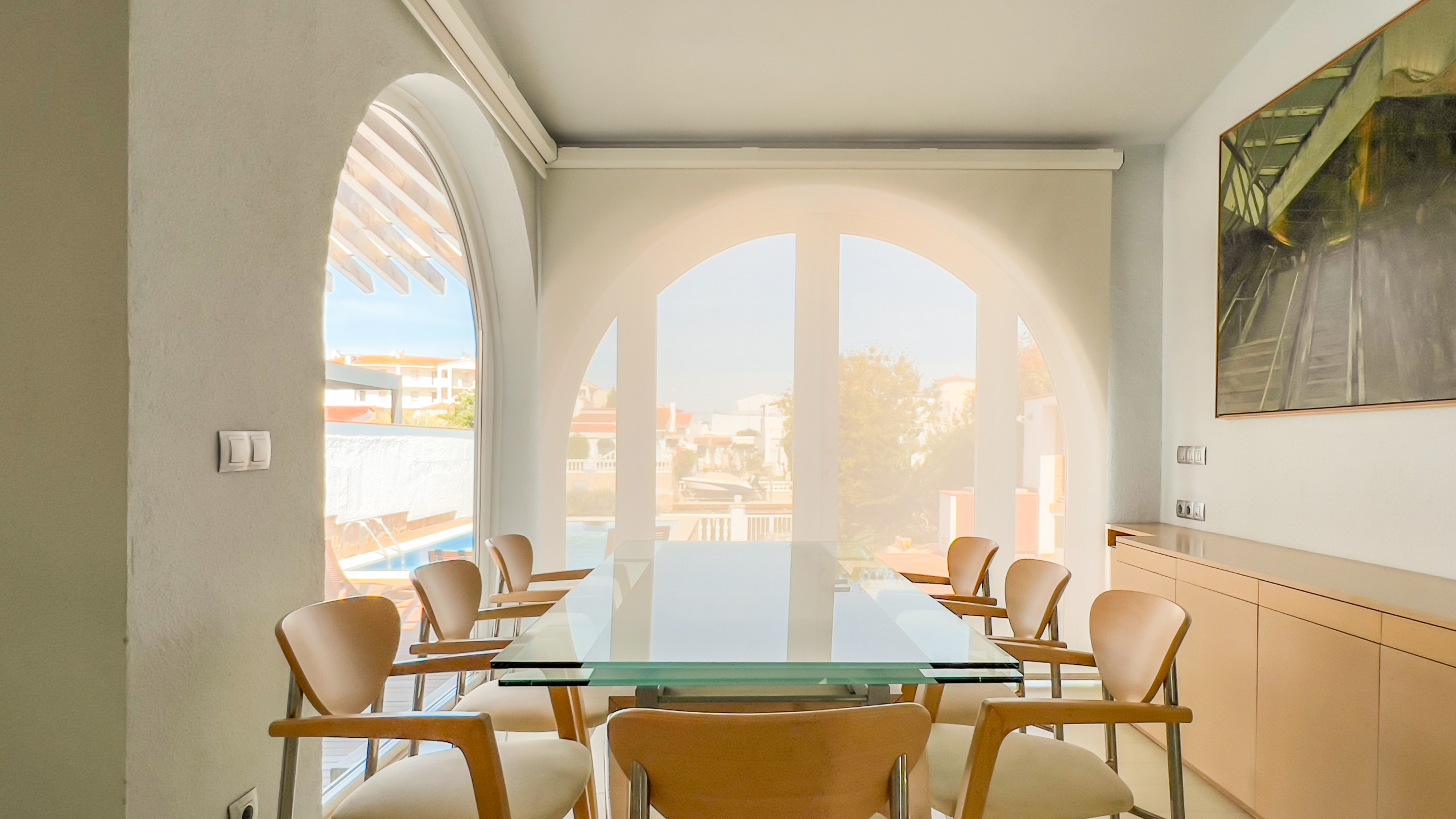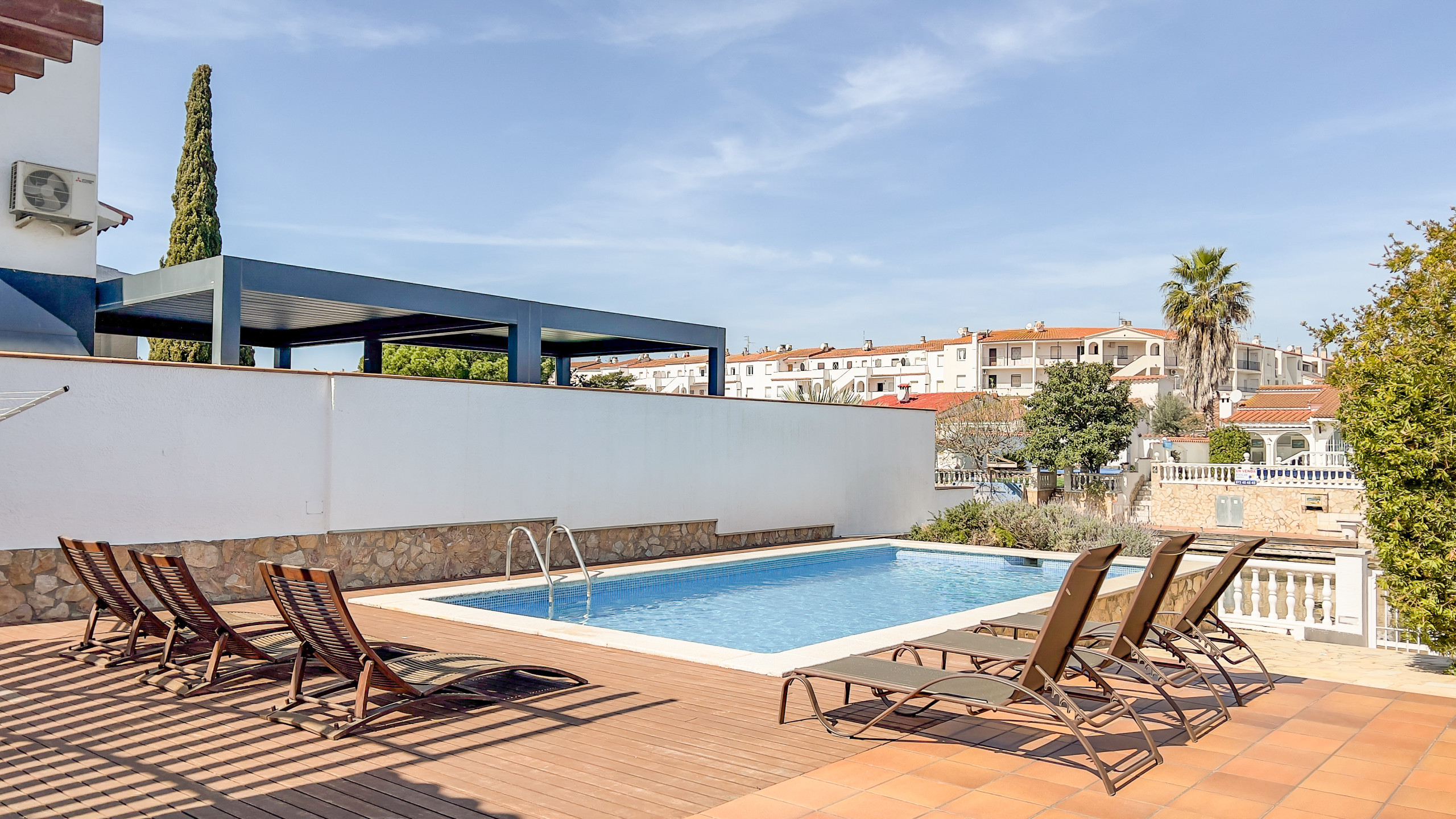 Die Villa in Empuriabrava verfügt über 3 Schlafzimmer und hat eine Kapazität für 7 Person(en). Die komfortable und voll ausgestattete Unterkunft verfügt über 200 m² und verfügt über eine tolle Aussicht auf den Strand / das Meer. Die Unterkunft befindet sich 0 m vom entfernt, 0 m vom , 3 m vom zum Sandstrand "Empuriabrava", 28 m vom Golfplatz "Torremirona Golf Club", 65 m vom Flughafen "Girona–Costa Brava Airport", 400 m vom Supermarkt "Lidl", 2 km vom "Hiper Restaurant Montserrat", 5 km von der Stadt "Castelló d'Empúries", 6 km vom Wasserpark "Aquatic Park Aquabrava", 9 km vom Kiesstrand "Roses", 13 km von der Bushaltestelle "Estacion de Autobuses Figueres", 14 km vom Bahnhof "Estació de tren figueres", 163 km vom "El Prat Airport barcelona", in einem Wohngebiet und in einer Ferienanlage. Die Unterkunft verfügt über einen Garten, Gartenmöbel, Terrasse 60 m², eine Waschmaschine, einen Grillplatz, einen Kamin, ein Internetanschluss (WLAN), ein Föhn, eine elektrische Heizung, eine Klimaanlage in der ganzen Unterkunft, ein Privatpool, einen Parkplatz im Freien (2 Stellplätze) auf dem Grundstück, Moskitonetz(e) im Schlafzimmer, 1 Fernseher, Satelliten-TV (in den folgenden Sprache(n): Spanisch). Die Offene Küche mit elektrisches Kochfeld ist ausgestattet in einen Kühlschrank, eine Mikrowelle, ein Backofen, Gefrierschrank, eine Spülmaschine, Geschirr/Besteck, Kochutensilien, eine Kaffeemaschine, einen Toaster, einen Wasserkocher und Herdplatte.