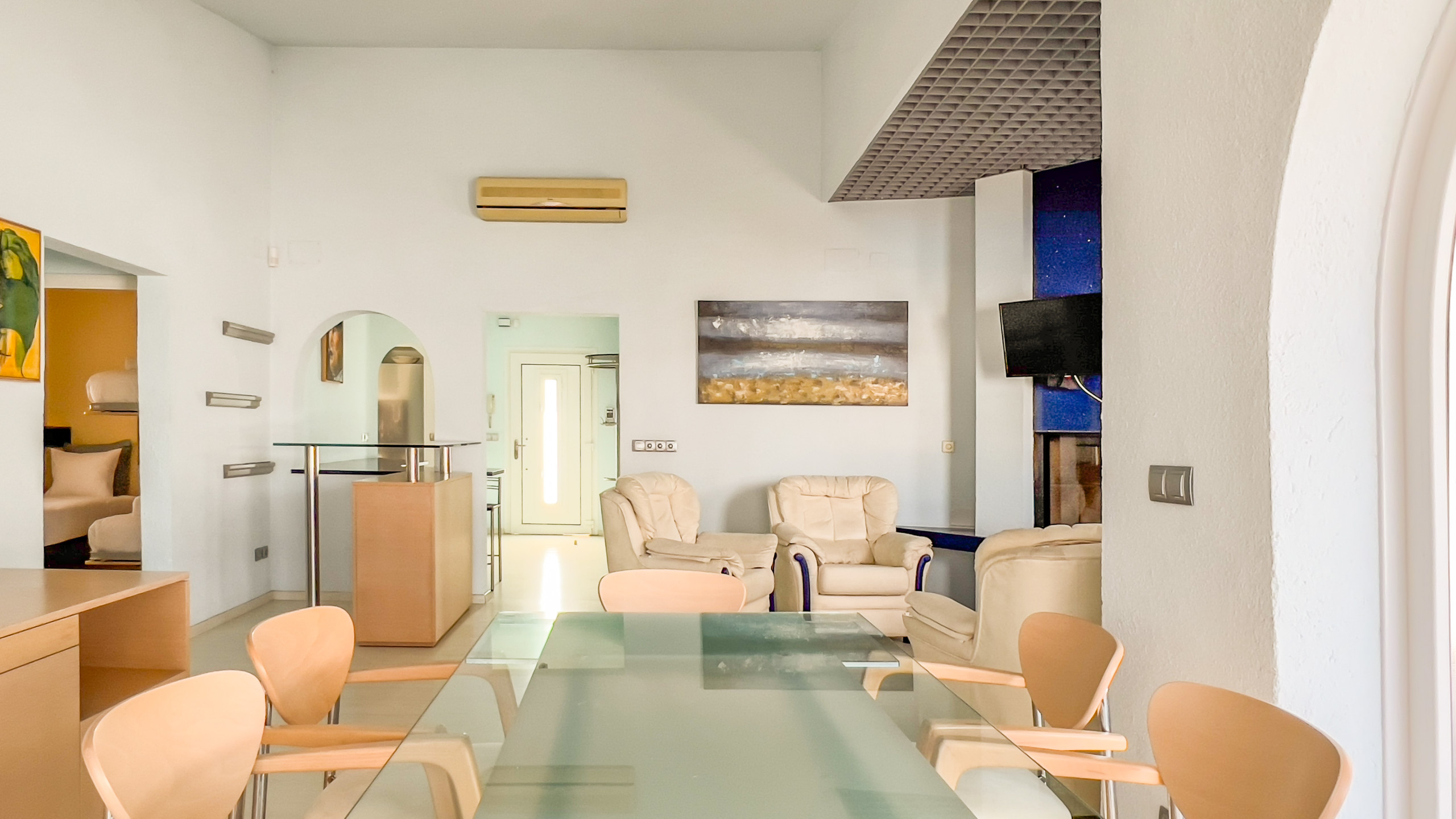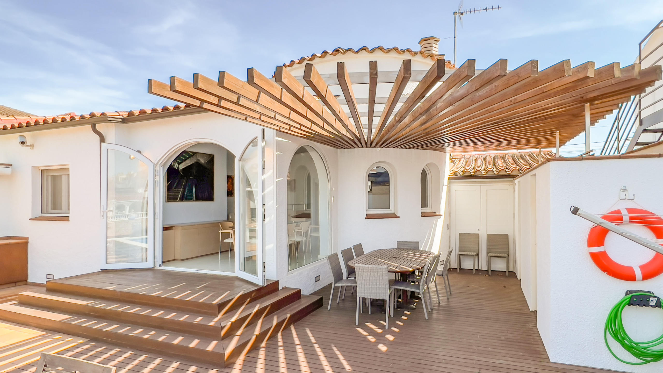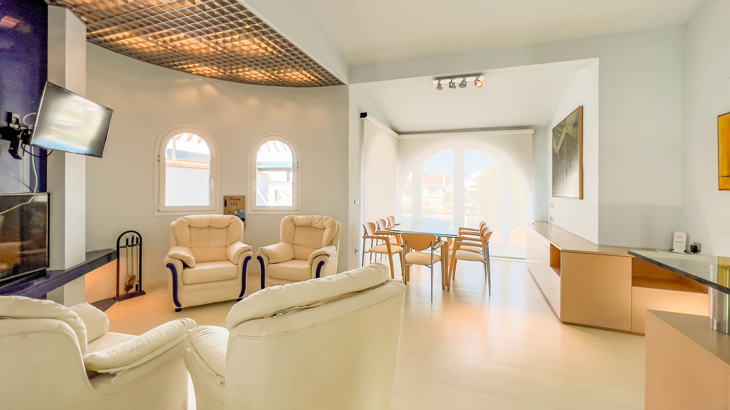 Die Villa in Empuriabrava verfügt über 3 Schlafzimmer und hat eine Kapazität für 7 Person(en). Die komfortable und voll ausgestattete Unterkunft verfügt über 200 m² und verfügt über eine tolle Aussicht auf den Strand / das Meer. Die Unterkunft befindet sich 0 m vom entfernt, 0 m vom , 3 m vom zum Sandstrand "Empuriabrava", 28 m vom Golfplatz "Torremirona Golf Club", 65 m vom Flughafen "Girona–Costa Brava Airport", 400 m vom Supermarkt "Lidl", 2 km vom "Hiper Restaurant Montserrat", 5 km von der Stadt "Castelló d'Empúries", 6 km vom Wasserpark "Aquatic Park Aquabrava", 9 km vom Kiesstrand "Roses", 13 km von der Bushaltestelle "Estacion de Autobuses Figueres", 14 km vom Bahnhof "Estació de tren figueres", 163 km vom "El Prat Airport barcelona", in einem Wohngebiet und in einer Ferienanlage. Die Unterkunft verfügt über einen Garten, Gartenmöbel, Terrasse 60 m², eine Waschmaschine, einen Grillplatz, einen Kamin, ein Internetanschluss (WLAN), ein Föhn, eine elektrische Heizung, eine Klimaanlage in der ganzen Unterkunft, ein Privatpool, einen Parkplatz im Freien (2 Stellplätze) auf dem Grundstück, Moskitonetz(e) im Schlafzimmer, 1 Fernseher, Satelliten-TV (in den folgenden Sprache(n): Spanisch). Die Offene Küche mit elektrisches Kochfeld ist ausgestattet in einen Kühlschrank, eine Mikrowelle, ein Backofen, Gefrierschrank, eine Spülmaschine, Geschirr/Besteck, Kochutensilien, eine Kaffeemaschine, einen Toaster, einen Wasserkocher und Herdplatte.
