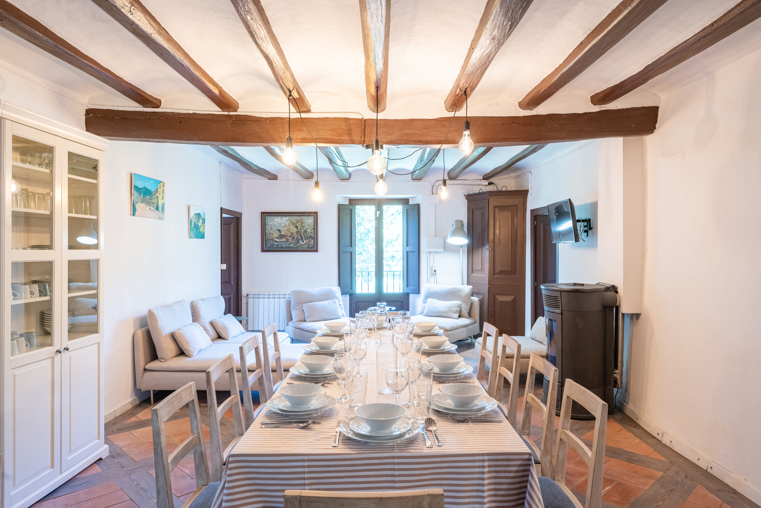 - Kitchen: Nespresso, full appliances, wood-burning stove, full sets for 11