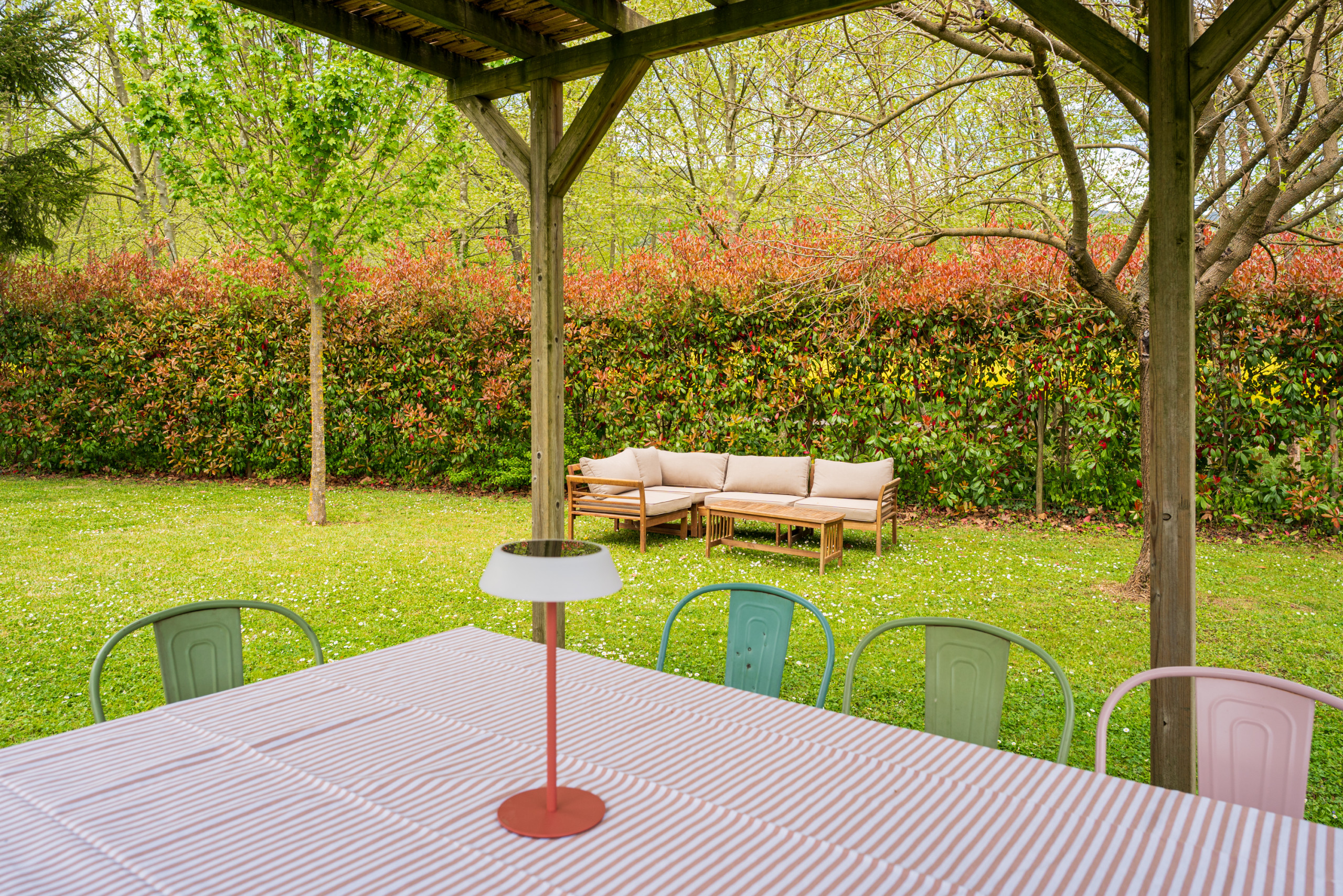 - Porch (Arcs) – Covered lounge area with garden furniture and 6 deckchairs.