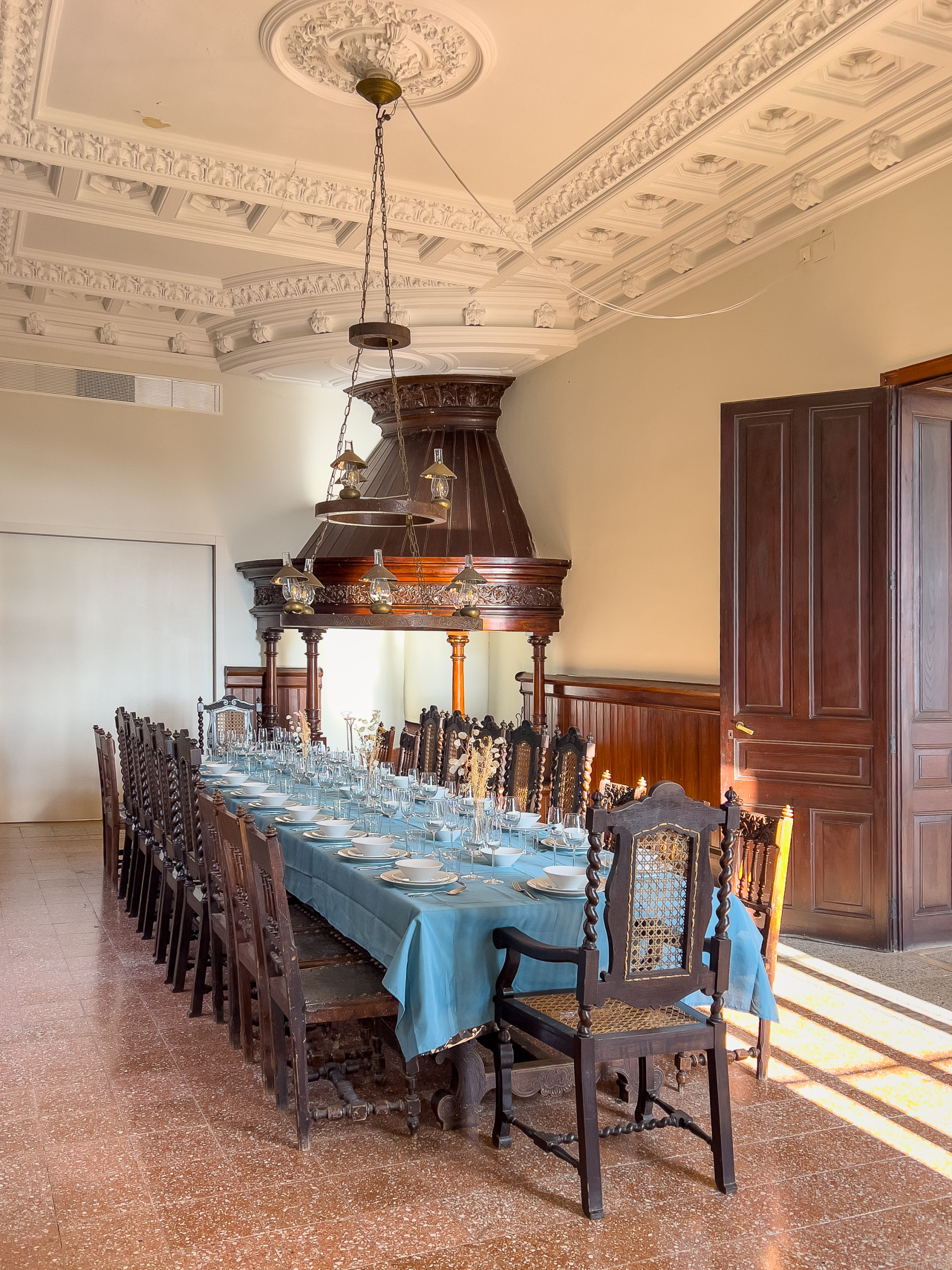- Interior Courtyard: High-ceilinged covered terrace with large dining table (not heated)