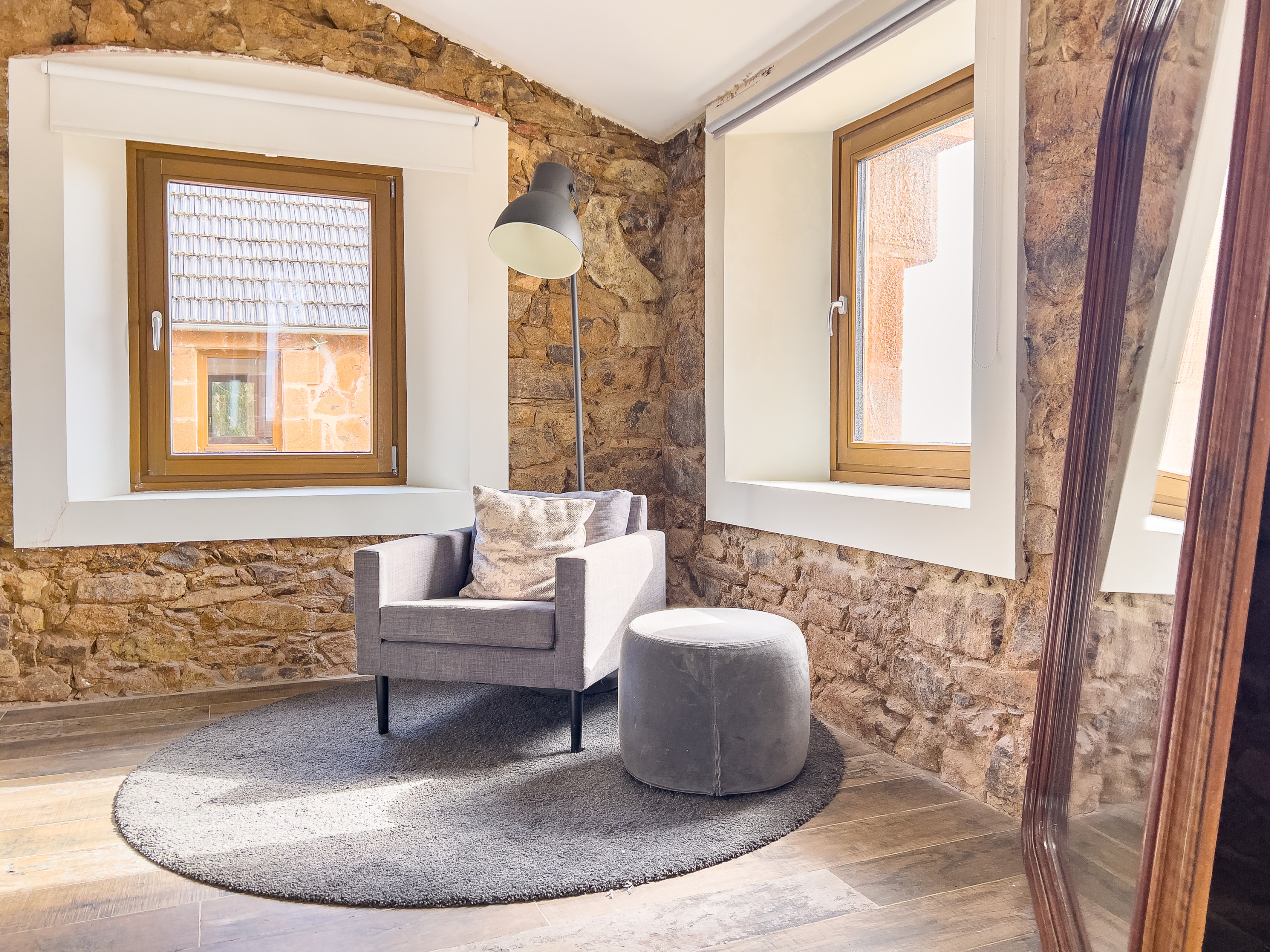 - Habitación 12 (torre): Cama doble, zona de estar, baño privado