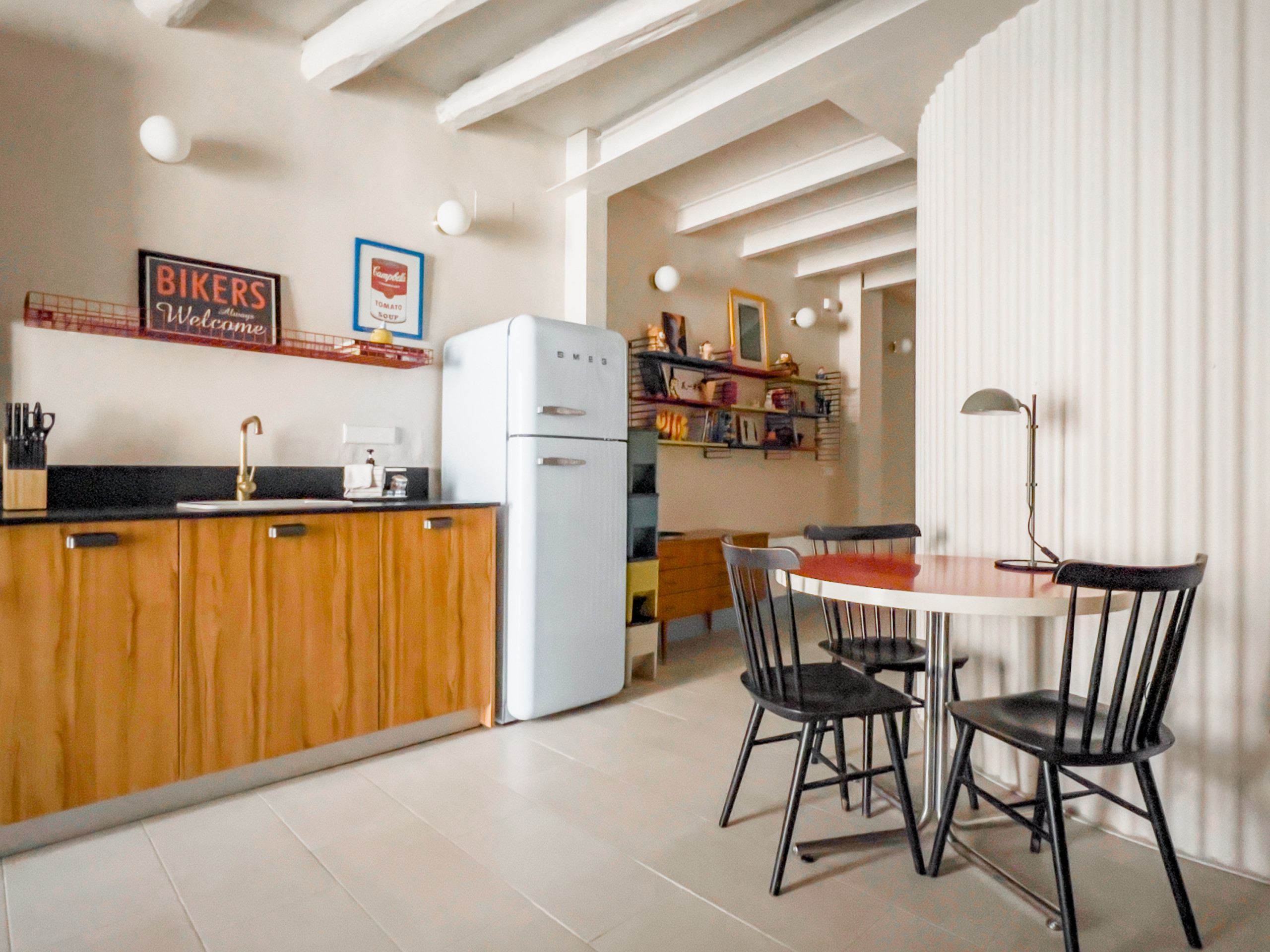Bienvenue à Majordoms Retrocèntric, un hébergement qui allie un design rétro avec une touche d'excentricité, situé au cœur de Banyoles. Ce mini-loft sur deux niveaux se distingue par son style mi-siècle, ses éléments ludiques et ses couleurs vives, créant une atmosphère unique et chaleureuse. Chaque détail a été soigneusement pensé pour offrir un séjour spécial et plein de caractère. Idéal pour les personnes seules ou les couples qui apprécient l'esthétique et la fonctionnalité.