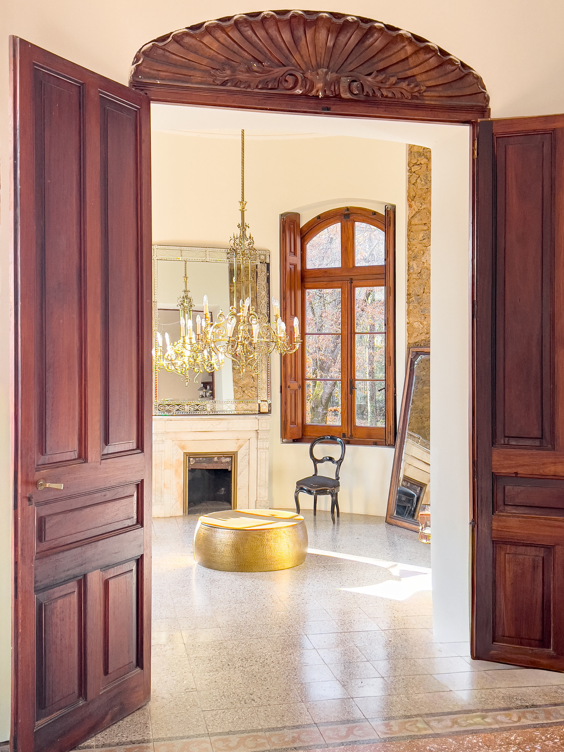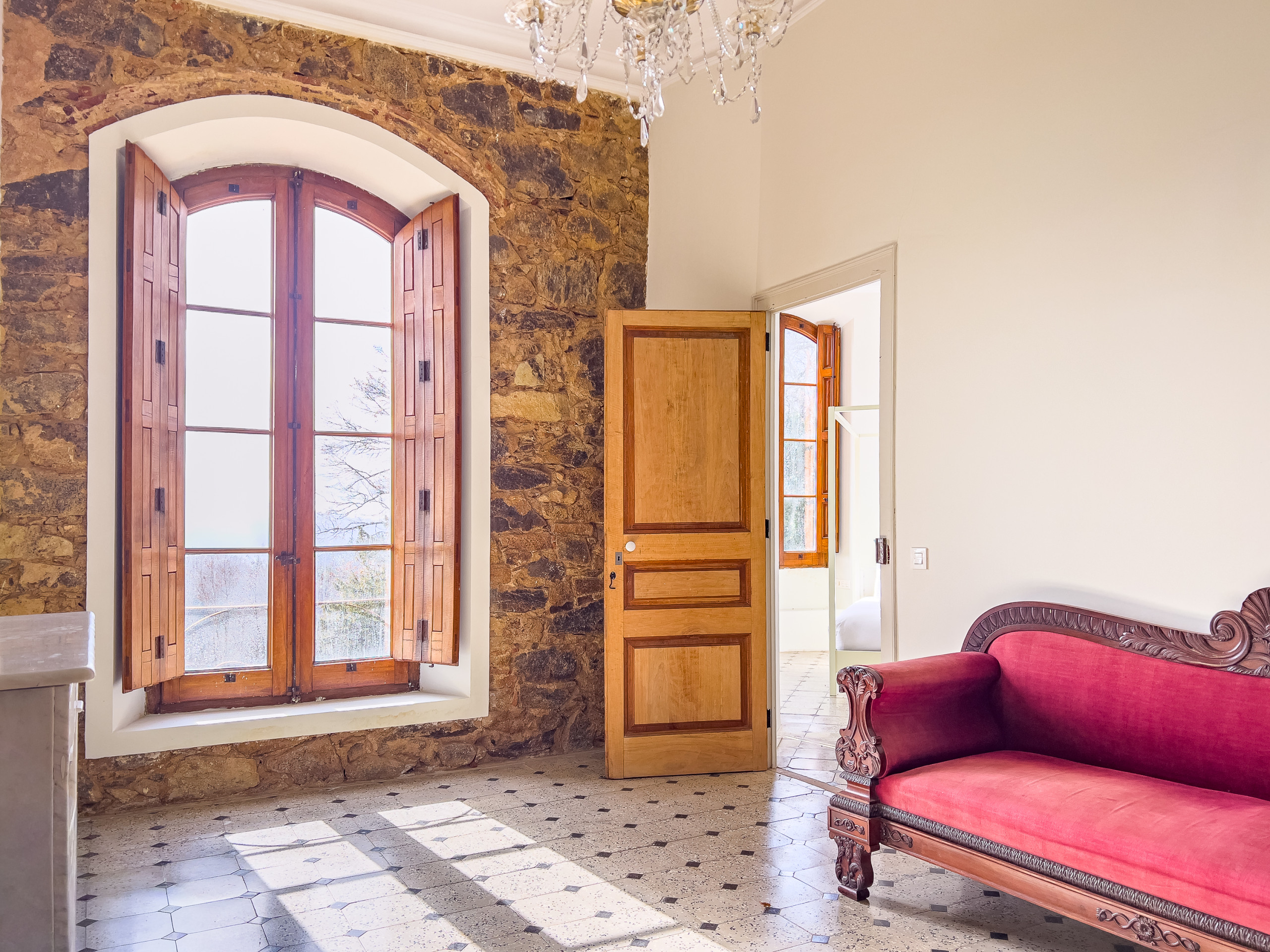 Cette terrasse spacieuse, située juste en contrebas du château, combine une piscine de 15 × 3 m avec une vue panoramique sur les montagnes du Montseny. Parfaite pour des après-midis détendus en famille, des photos familiales à l'heure dorée ou des scènes élégantes au bord de la piscine pour le cinéma et la photographie. La terrasse offre un espace généreux pour des repas en plein air ou des boissons au coucher du soleil, avec des toilettes pour invités à proximité.