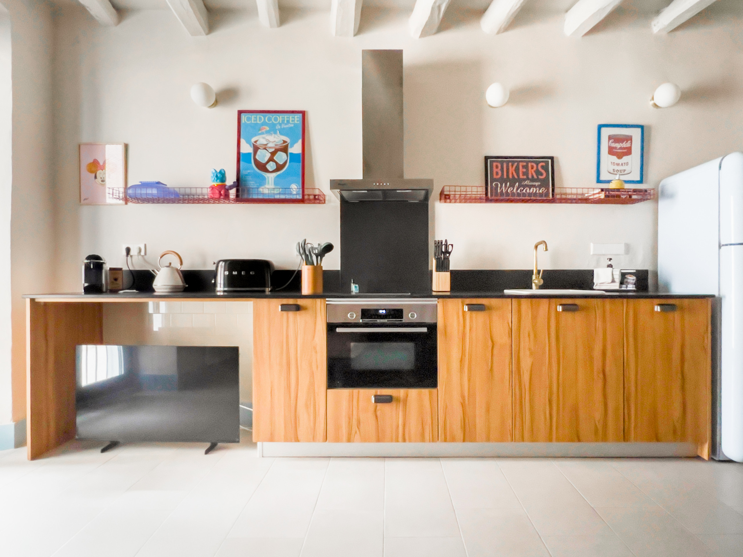 Welkom bij Majordoms Retrocèntric, een accommodatie die retro design combineert met een vleugje excentriciteit, gelegen in het hart van Banyoles. Deze tweelaagse mini-loft onderscheidt zich door zijn mid-century stijl, speelse elementen en levendige kleuren, en creëert een unieke en gezellige sfeer. Elk detail is zorgvuldig uitgekozen om een verblijf te bieden dat zowel bijzonder als karaktervol is. Perfect voor individuen en koppels die esthetiek en functionaliteit waarderen.