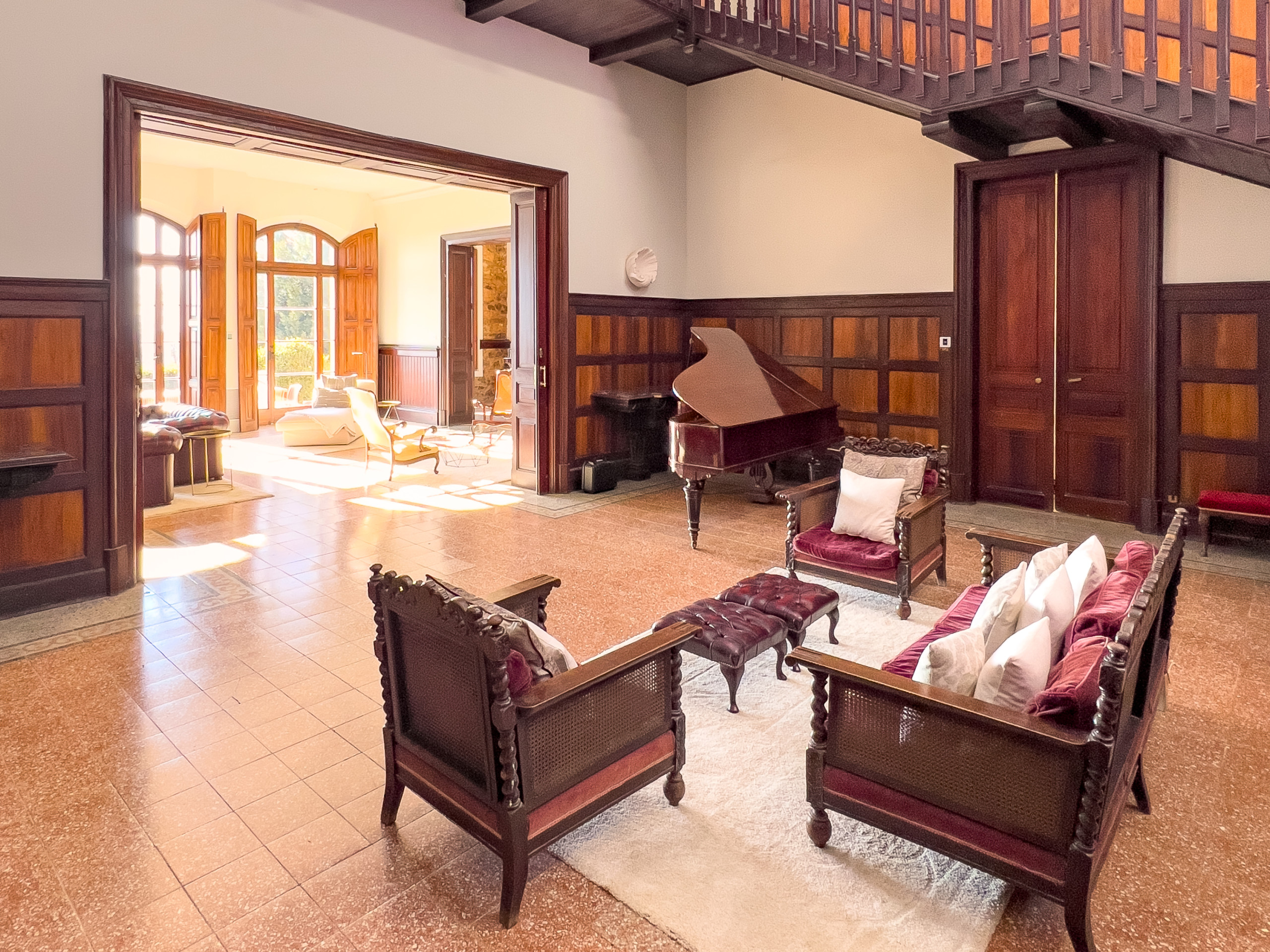 - Muziekzaal – 70 m²: Elegante entreehal met piano, zitgedeelte en hoge plafonds